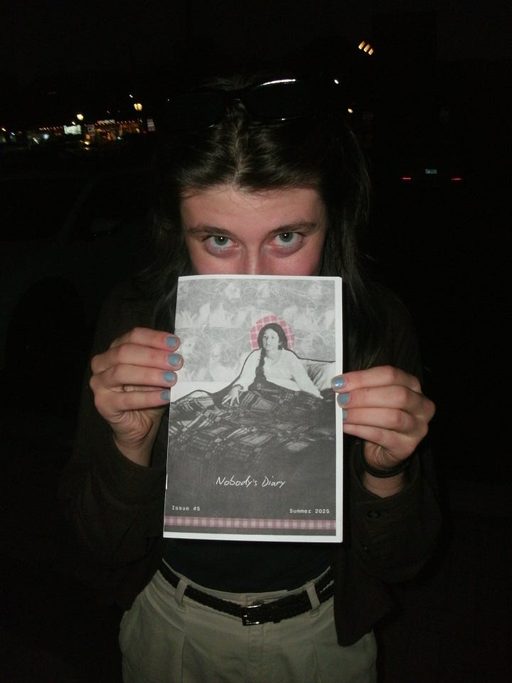 Thank you to anyone who picked up a copy, had kind words to say about my work, or listened to the accompanying mixtape! Sometimes I get nervous when I release zines – Nobody’s Diary is quite literally excerpts from my real diary. There’s always the risk of being misunderstood or being perceived too much, and that’s scary. But I also think that I make art because, ultimately, I would rather be known than be mysterious.